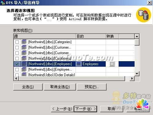 5.我們注意這里選表的時候右邊有一個“轉換”列。SQL導出只轉換數據類型并不考慮其他腳本所以我們遇到的自動編號問題也就出在這里。有自動編號的一定要點選“轉換”。