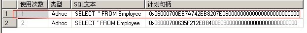 結果又新添加一個執行計劃,即SQL SERVER認為這是兩個不同的SQL語句并分別建立了執行計劃;