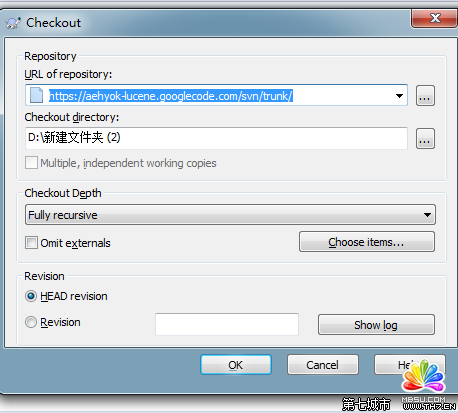 輸入URL of repository:https://aehyok-lucene.googlecode.com/svn/trunk/