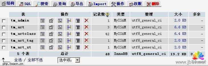 4 數(shù)據(jù)庫(kù)的編碼格式為utf8_general_ci ,表格式也是utf8_general_ci,中文字段也是用utf8_general_ci,看phpmyadmin的載圖:
