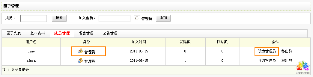 選擇“設(shè)為管理員”鏈接可以將用戶(hù)設(shè)置為圈子管理員(如圖28)。