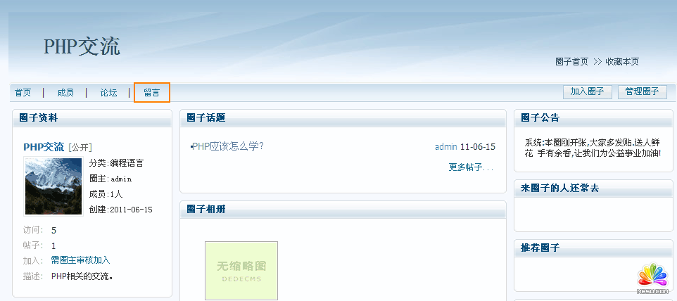DedeCms教程-DedeCms教程:圈子管理模塊使用說(shuō)明(2)