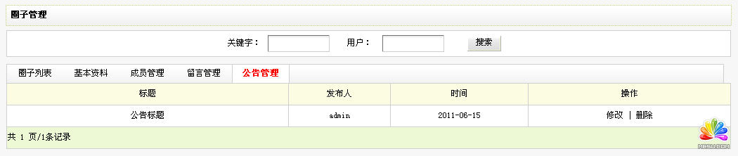 選擇“公告管理”選項(xiàng)卡,查看圈子所有的公告(如圖34)。