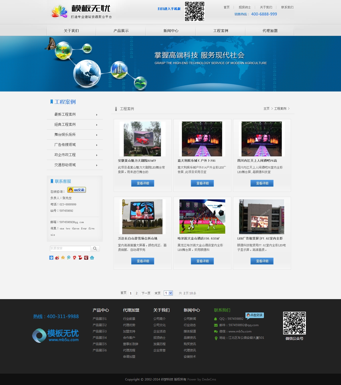 dedecms(織夢內核)開發的機械設備,電子產品,通訊產品,醫療器械等產品展示類網站模板,網站源碼非常簡介大氣,圖片展示效果非常突出,由織夢dede內核搭建,已經設置好欄目,各種JS特效都已實現,調用好數據,方便您使用。此模板最大的亮點就是帶有手機版,和PC端共用同一后臺,而且設置好了訪問路徑,當用手機訪問同一域名時自動進入手機版。具體可以瀏覽演示站。手機站訪問路徑:http://域名/wap