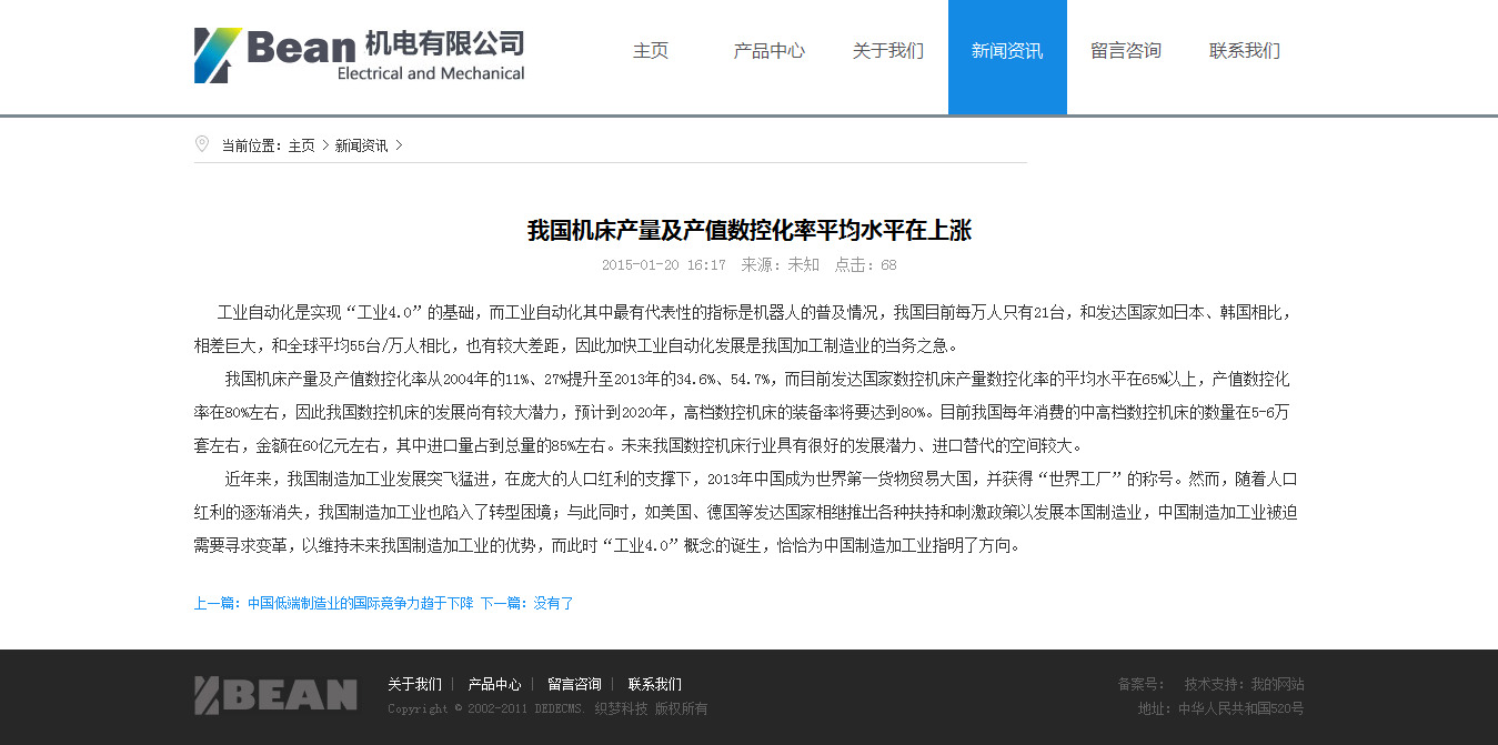 織夢CMS簡潔機電設備生產企業網站模板,通用型的一款模板,適合大小型企業公司,首頁布局簡單合理,圖文并茂,附帶后臺數據,直接購買,直接上線!