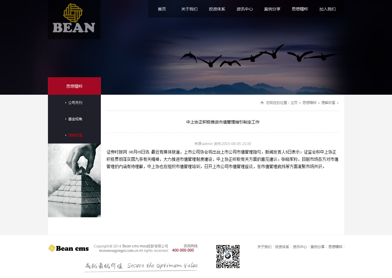 織夢dede投資/基金/融資/理財/證劵企業通用網站模板,網站源碼非常簡介大氣,圖片展示效果非常突出。