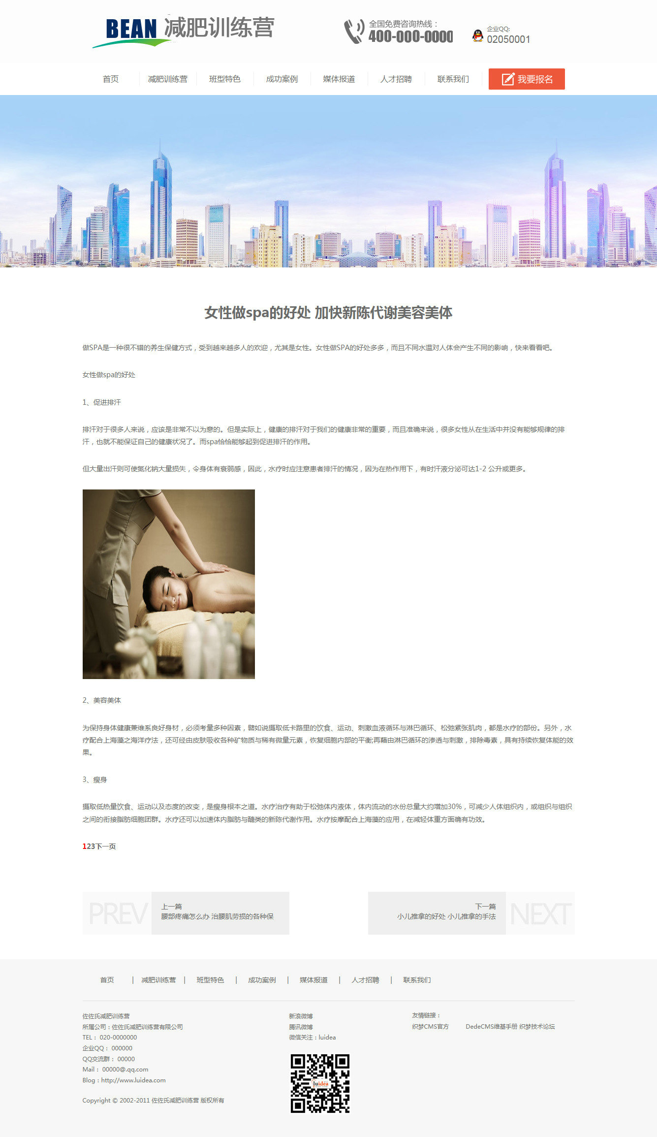 織夢dedecms減肥修身美容培訓班夏令營按摩通用型企業模板