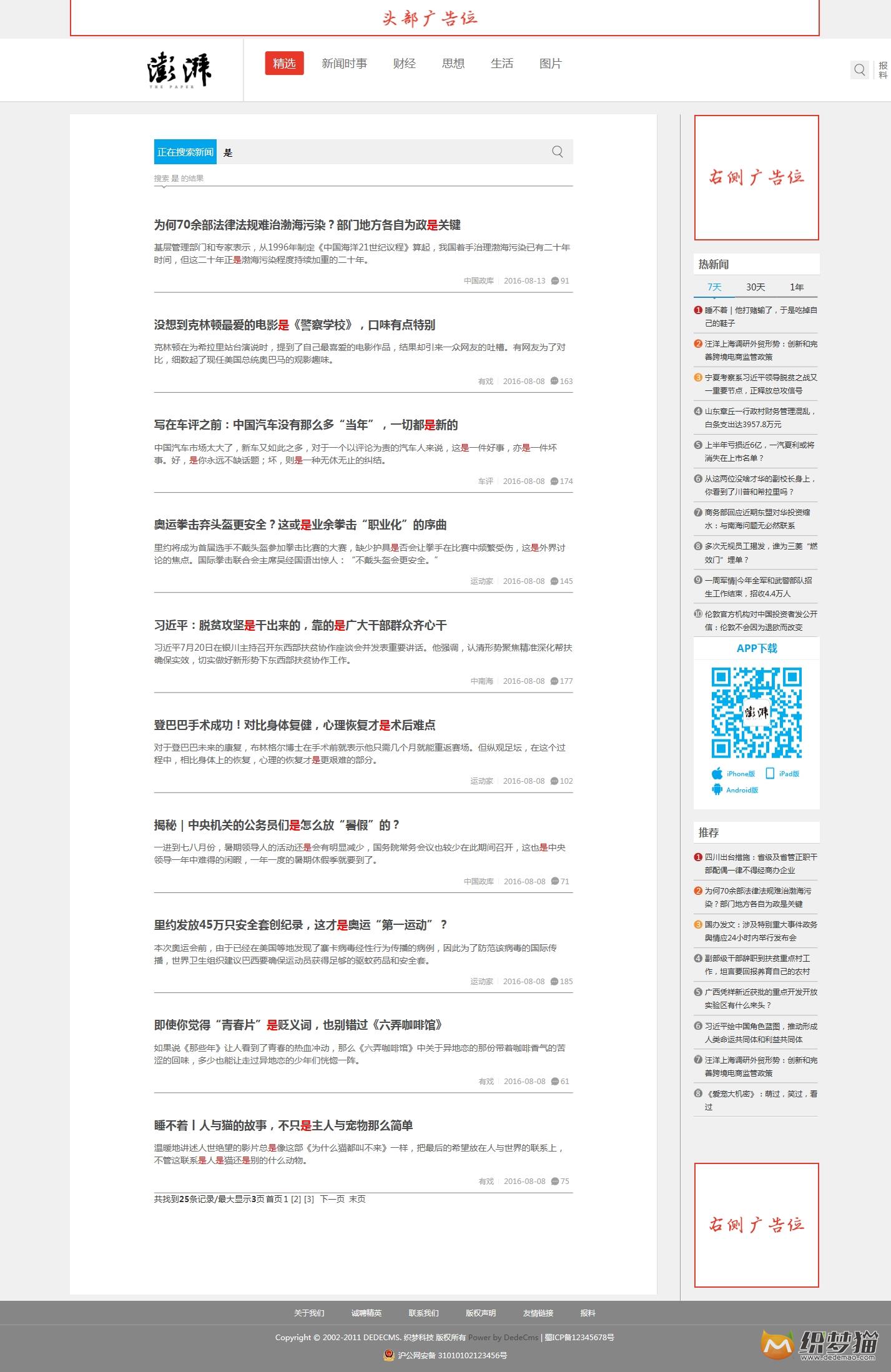 精仿澎湃新聞織夢模板(支持移動端),測試完整無錯,兼容主流瀏覽器。