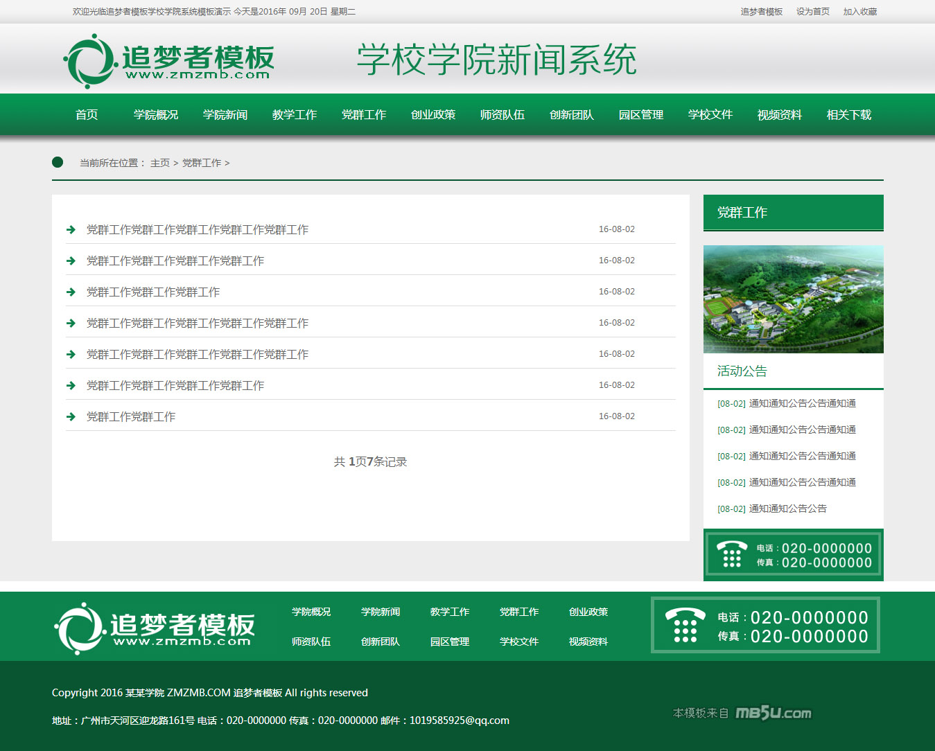 綠色學校學院新聞資訊網站織夢模板(帶手機版),適合學校學院新聞展示,博客資訊類的企業公司使用。整體布局大氣清晰干凈,大氣。模板附帶測試數據,帶安裝說明。