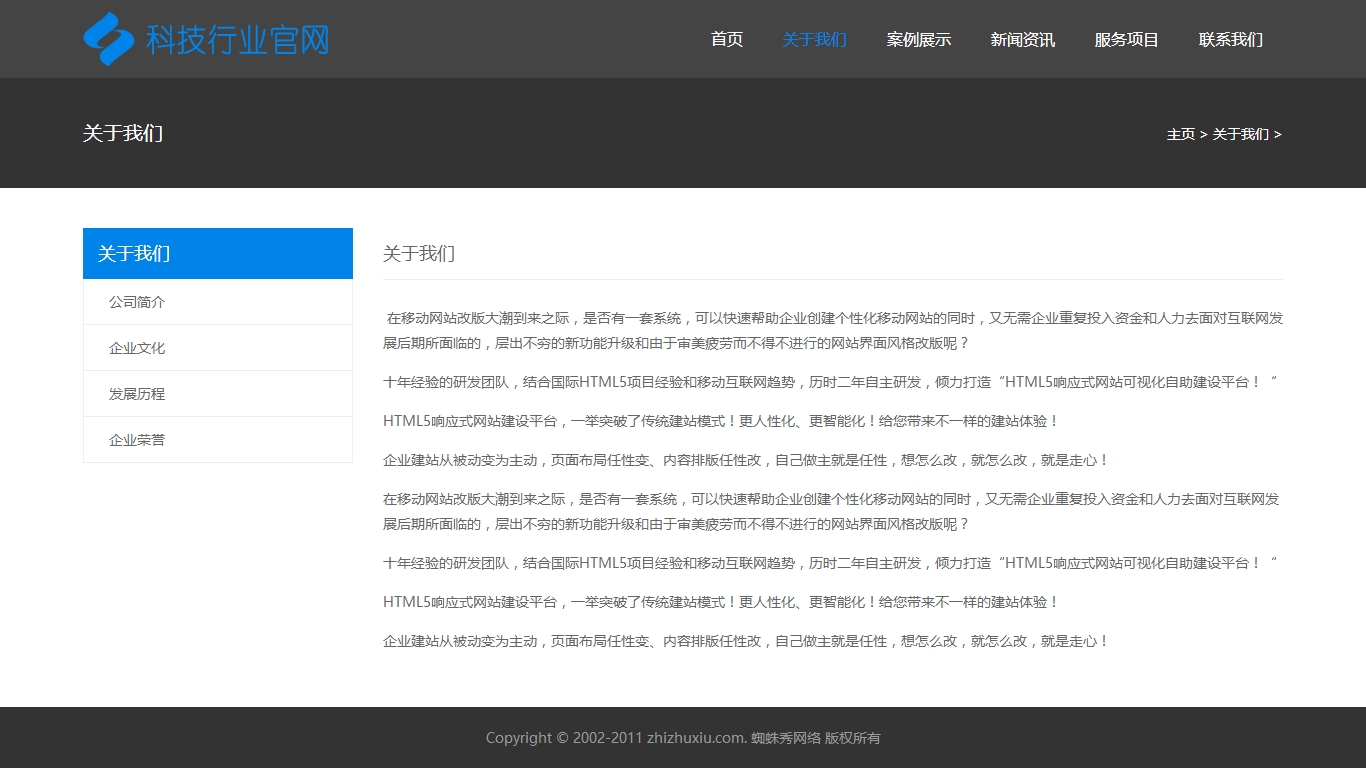 此套模板是一套PC+獨立手機端的的企業模板,相比國外的響應式模板這種組合的網站結構還是挺受我們國人的喜愛的價格:元 點擊:123織夢cms大氣重型機械設備公司