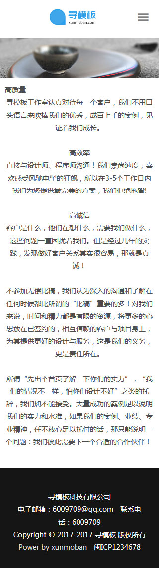 模板帶下拉菜單,布局簡潔清爽,而且是一套自適應的網站模板,支持PC、平板、手機網站瀏覽,用戶體驗非常不錯!