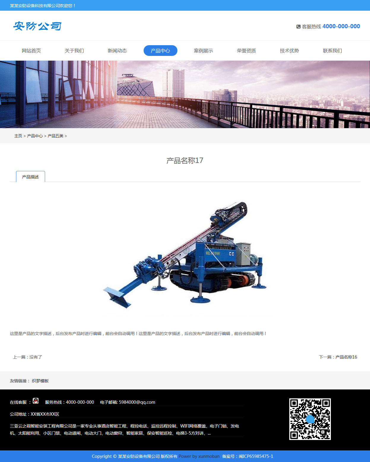 織夢響應式電子安防設備通用企業模板,是一套設計風格簡約大氣的公司企業類通用網站模板。這套源碼的風格設計是大家非常喜歡簡約大氣的設計風格,整站配色也是企業站常用的藍色風格,可以說都是當下流行的元素。首頁的內容布局是比較豐富的,適合營銷展示型的企業站。設計包含的內頁也比較多,完全可滿足一個企業站的需求。當然,這也是一套響應式的模板,在手機端也能得到完美的用戶體驗。在移動互聯的時代,沒有手機版的模板都不是好模板。那么這套模板的話可以說是現在很標準很受企業喜愛的一套通用型企業站了。具體效果大家請參考演示站吧!
