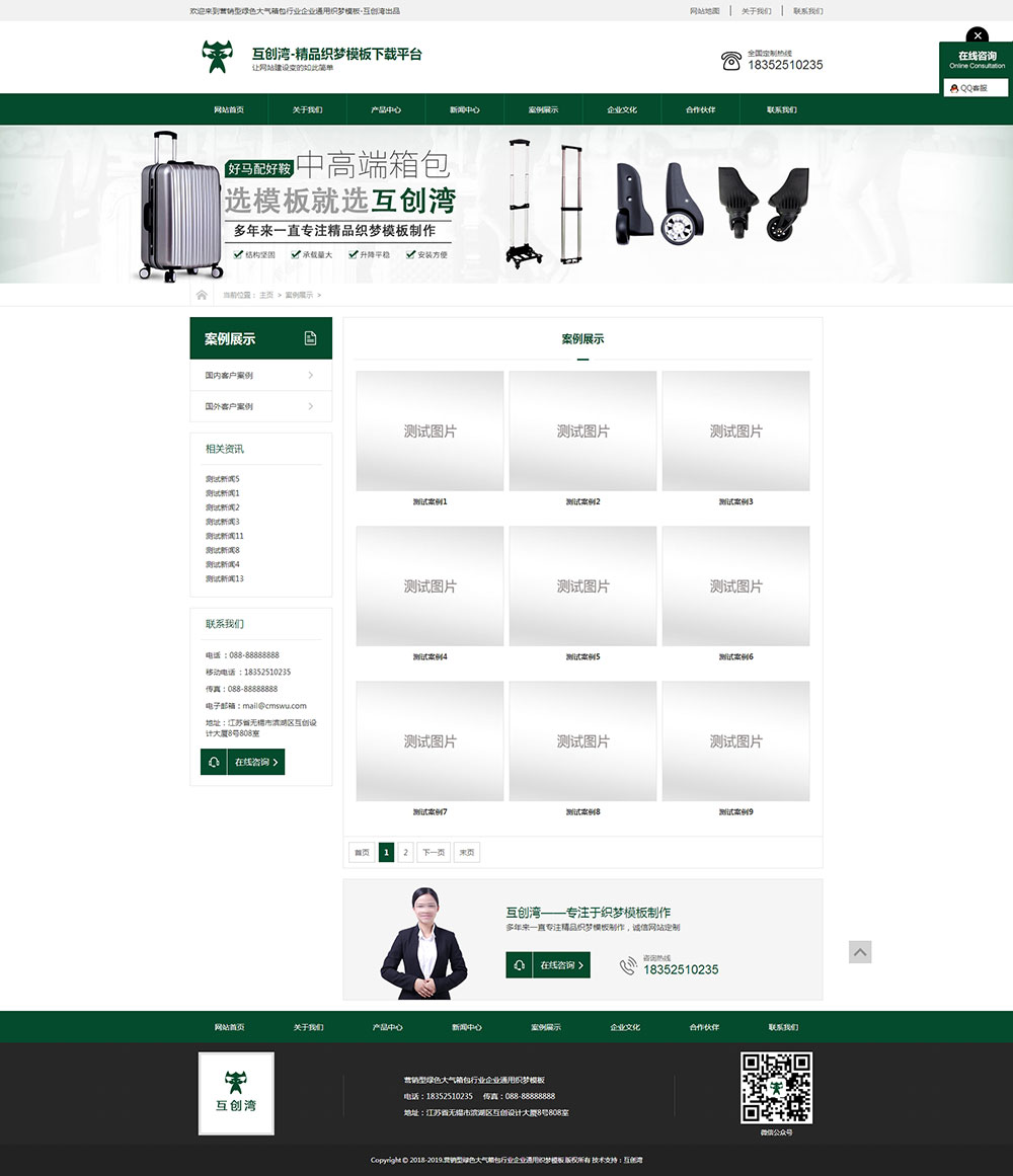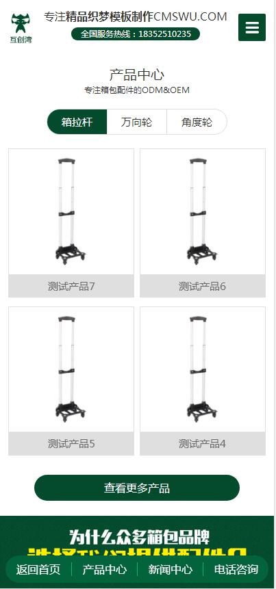 營銷型綠色大氣箱包行業企業通用織夢模板+wap手機端同步-互創灣出品