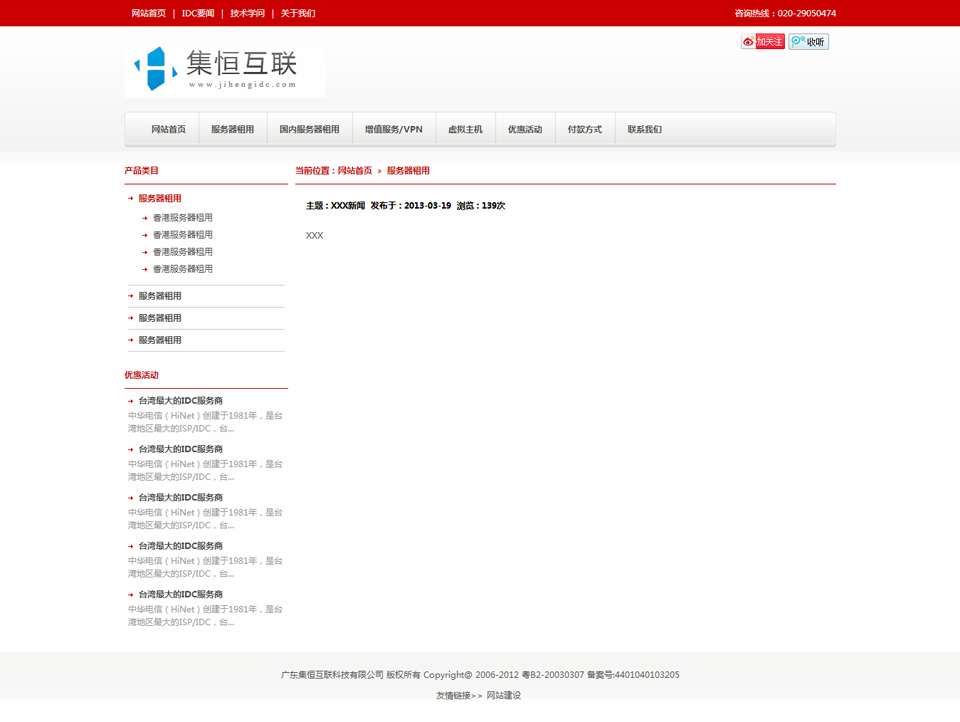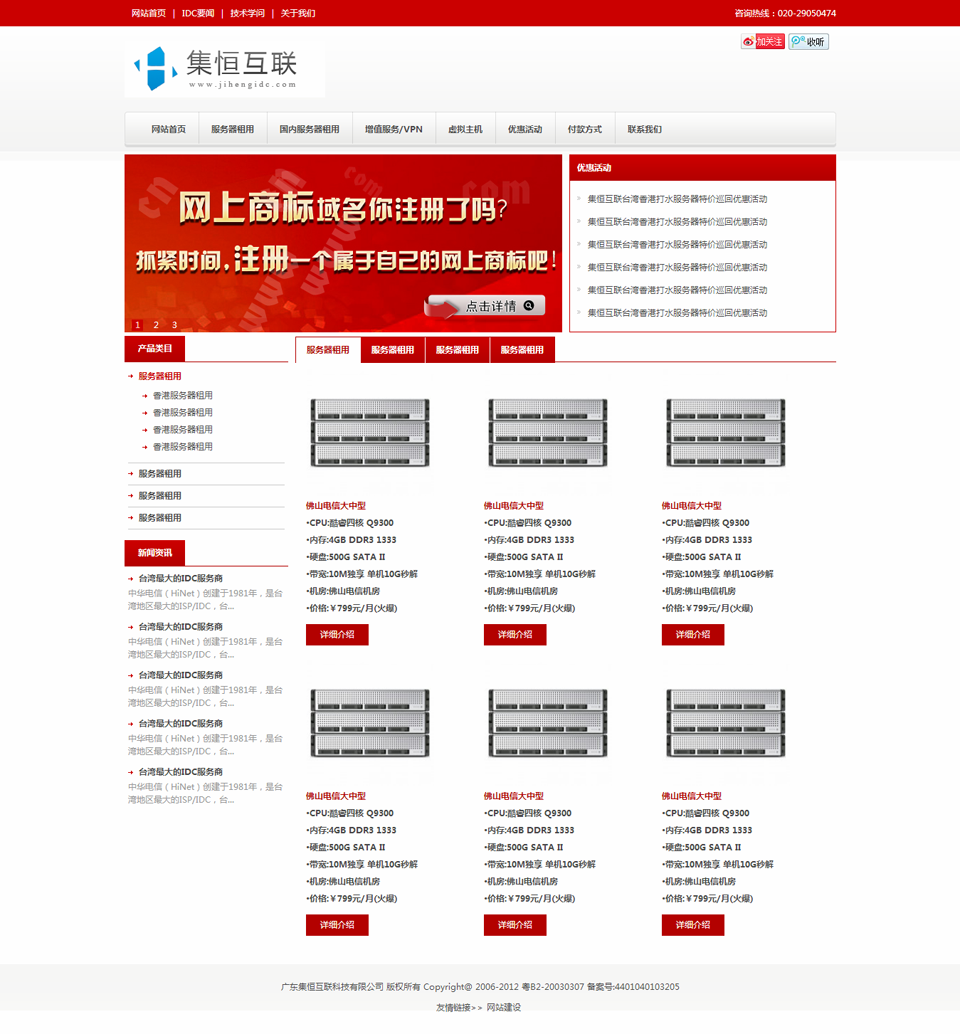 大氣紅色IDC服務器銷售行業模板,虛擬主機公司網站