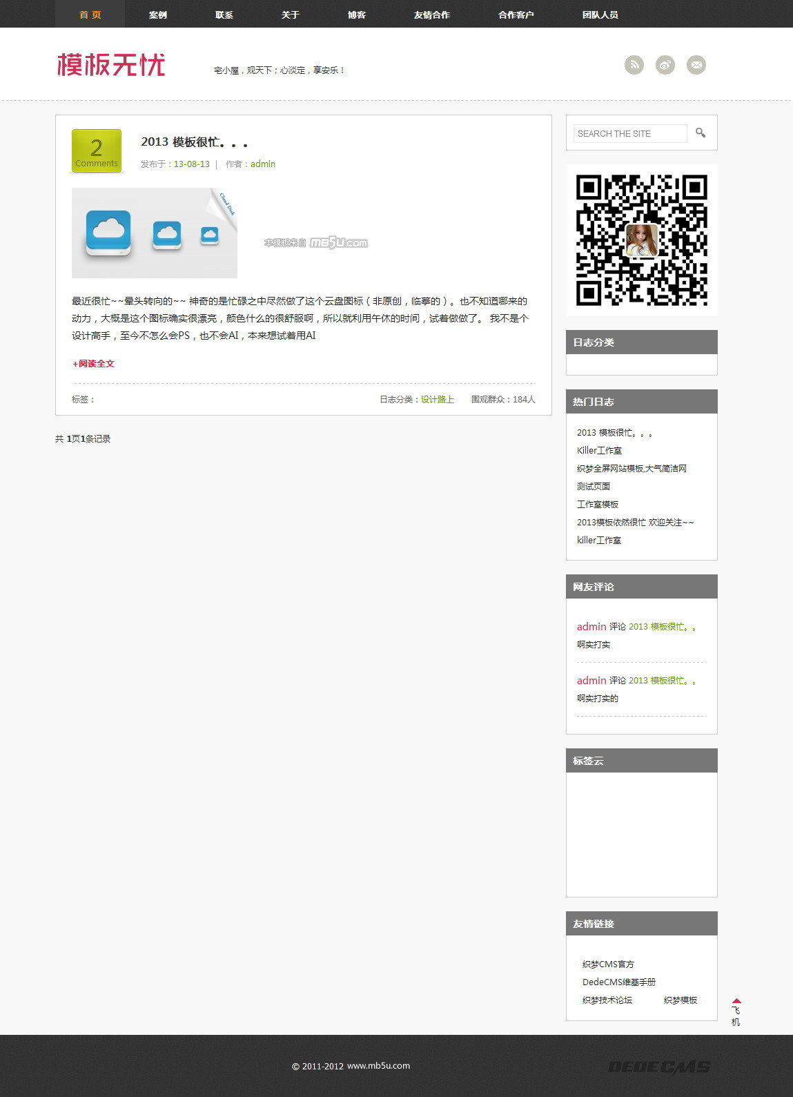 超酷織夢工作室模板,純DIV+CSS設計,自帶織夢黑色帥氣DEDECMS博客模板和會員評論功能,整站完整測試無誤,自帶測試數據,兼容所有主流瀏覽器。