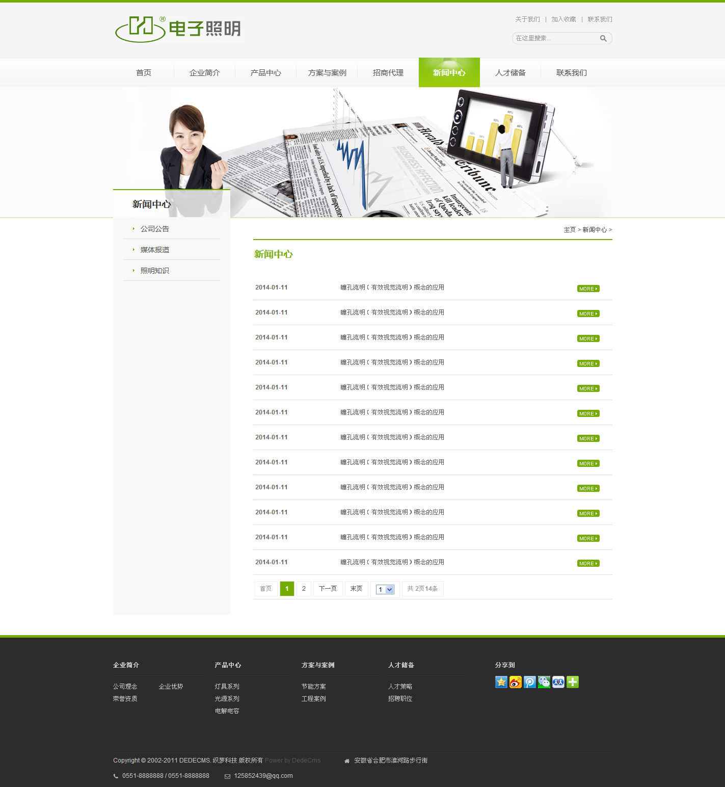織夢標準企業站模板,大屏banner幻燈片切換,帶二級菜單,導航高亮,自定義字段產品描述,適合電子、照明設備、LED、亮化工程等企業站。