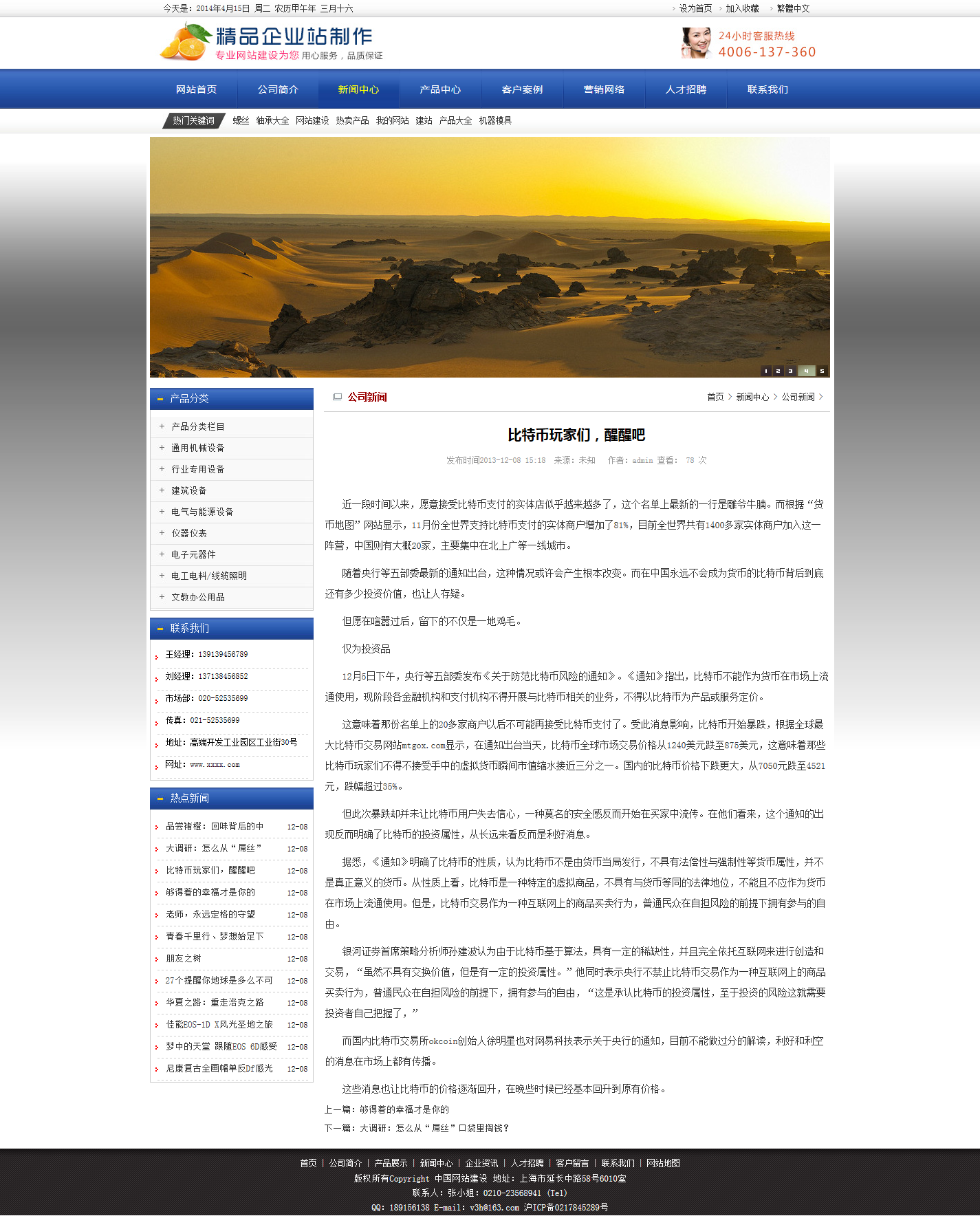 此套模板是一套PC+獨立手機端的的企業模板,相比國外的響應式模板這種組合的網站結構還是挺受我們國人的喜愛的價格:139 元 點擊:123織夢cms大氣重型機械設備公司