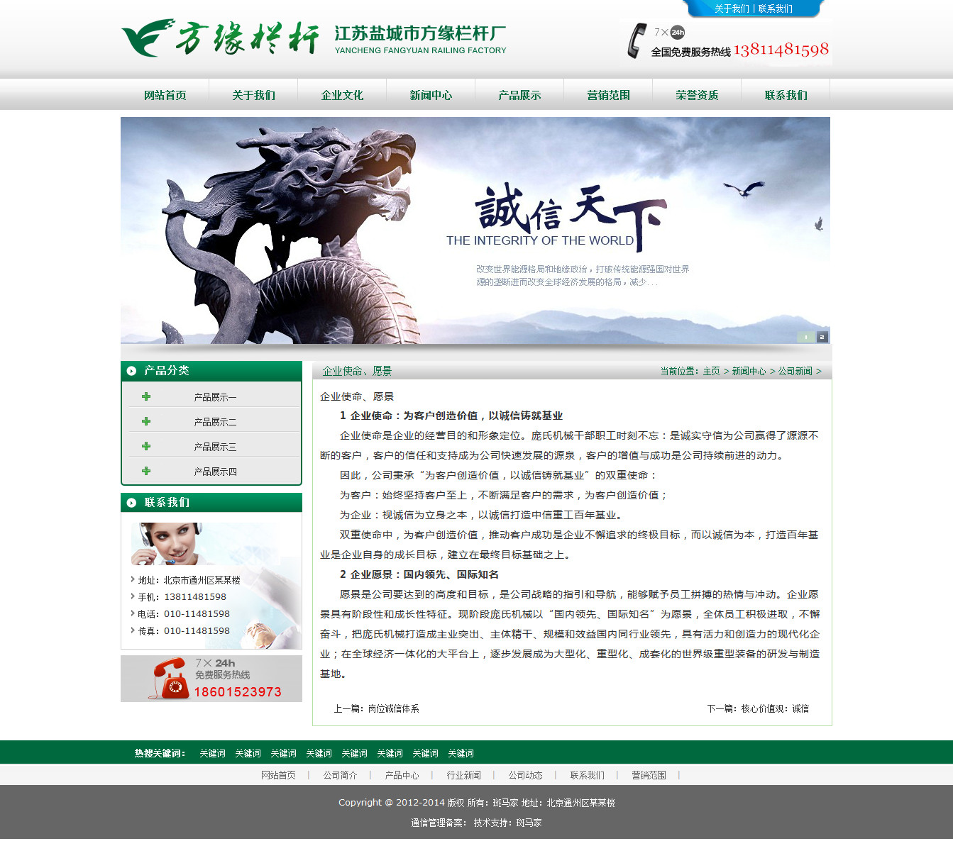 此套模板是一套PC+獨立手機端的的企業模板,相比國外的響應式模板這種組合的網站結構還是挺受我們國人的喜愛的價格:元 點擊:123織夢cms大氣重型機械設備公司
