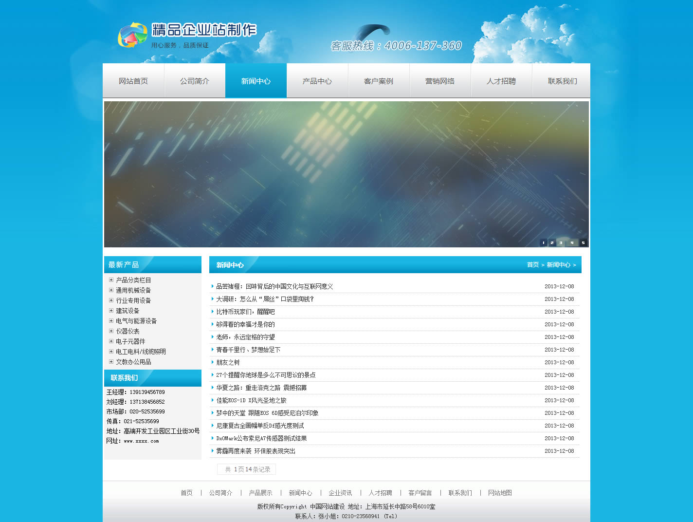 精品藍色企業網站,整體界面大氣時尚,標準DIV+CSS設計,更利于搜索引擎優化。