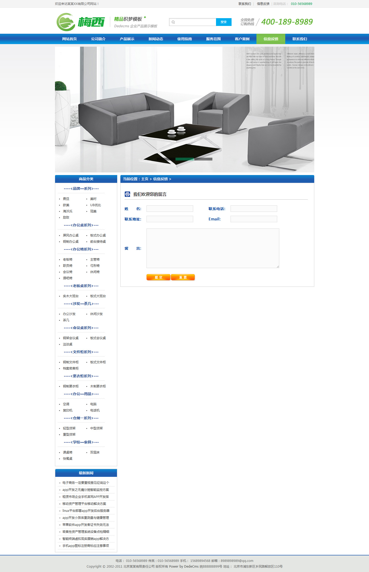 精品織夢產品展示模板,標準企業網站模板,完美兼容主流瀏覽器,假一罰十,DEDE5.5內核以上都可以使用;附帶測試數據+部分PSD文件+安裝教程+修改教程;后臺可修改聯系電話、傳真、地址等;