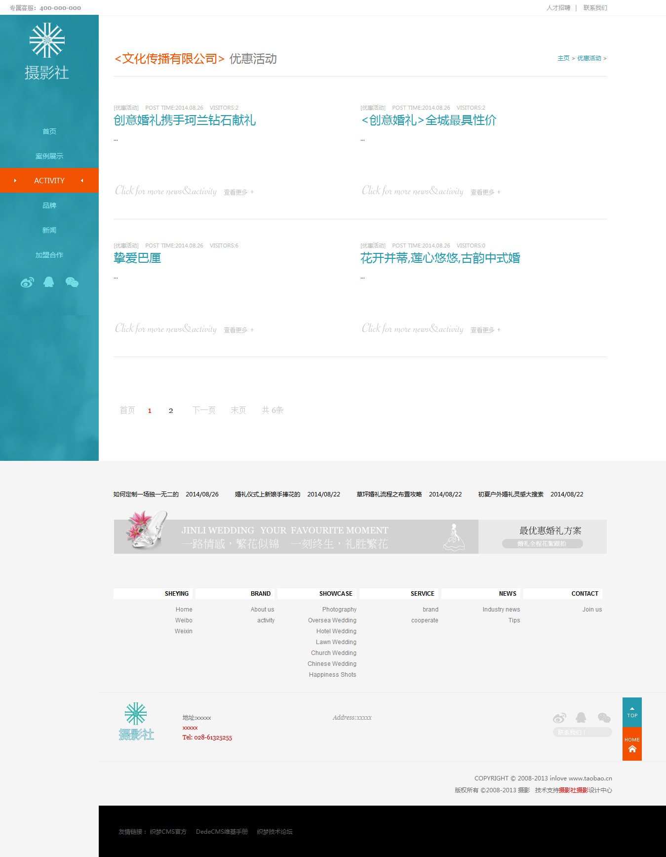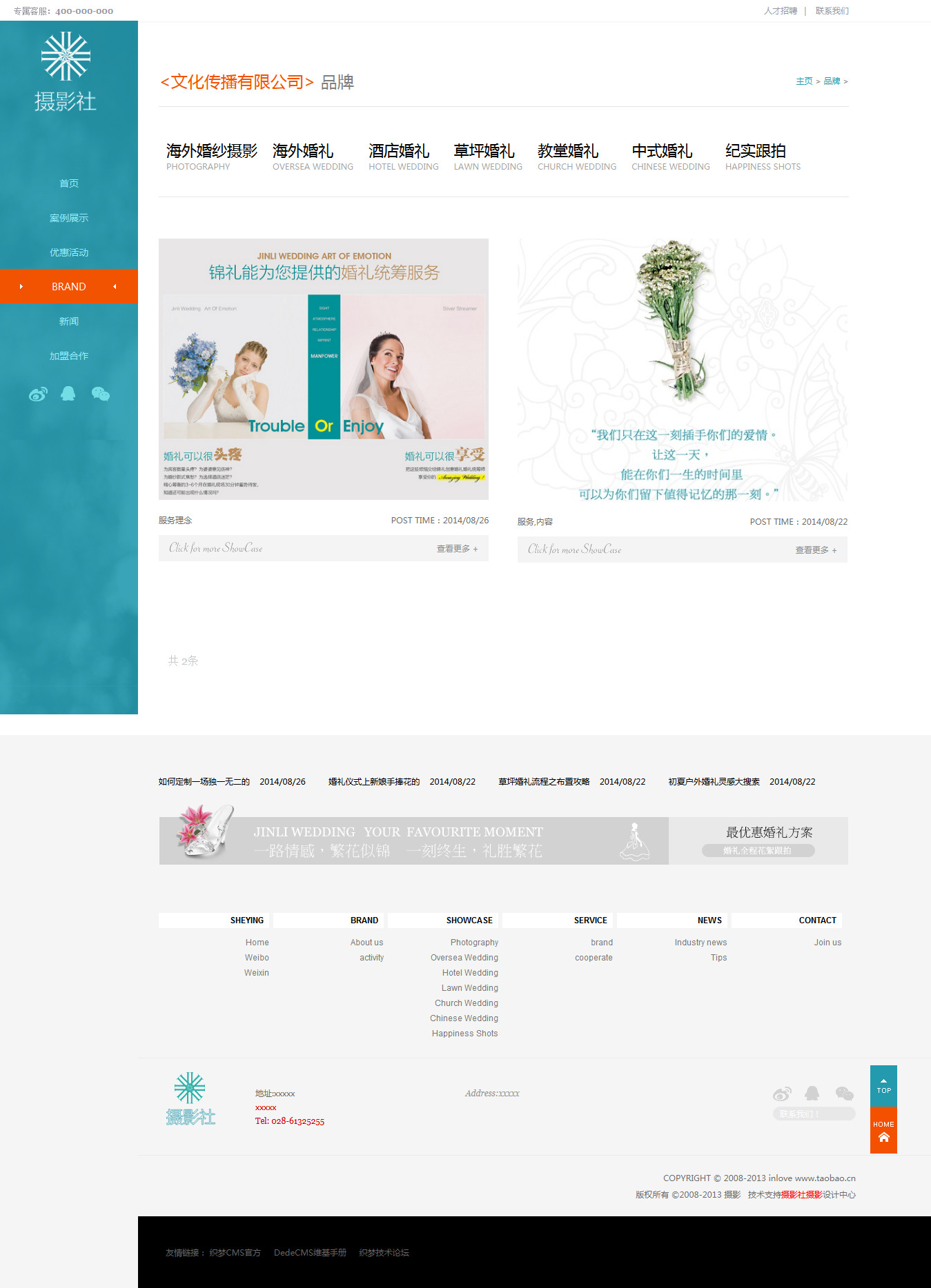 織夢dedecms婚紗攝影婚慶影樓工作室網站模板(帶測試數據)