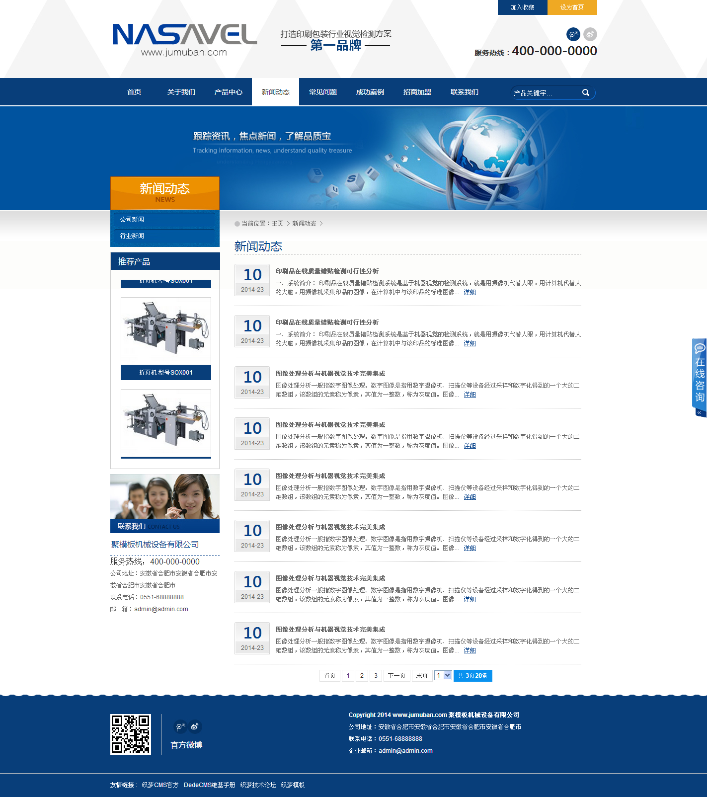 此套模板是一套PC+獨立手機端的的企業模板,相比國外的響應式模板這種組合的網站結構還是挺受我們國人的喜愛的價格:元 點擊:123織夢cms大氣重型機械設備公司
