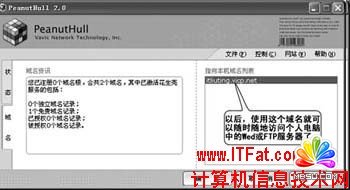 圖4花生殼2.0的界面單擊“文件→刷新”可以對客戶端數據進行重新讀取,這時“域名”標簽中就會顯示出你申請域名的目前狀態(tài),并列出了指向本機的域名(如圖5)。