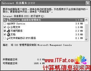 1.安裝IIS 打開控制面板中的“刪除/添加程序”,選擇“添加/刪除Windows組件”,在彈出的Windows組件向導窗口中選中“Internet信息服務 (IIS)”,點“詳細信息”按鈕,把其中的“Internet信息服務管理單元”、“公用文件”、“萬維網服務”、“文檔”選項選中(如圖1),確定后,插入系統(tǒng)安裝盤進行安裝。