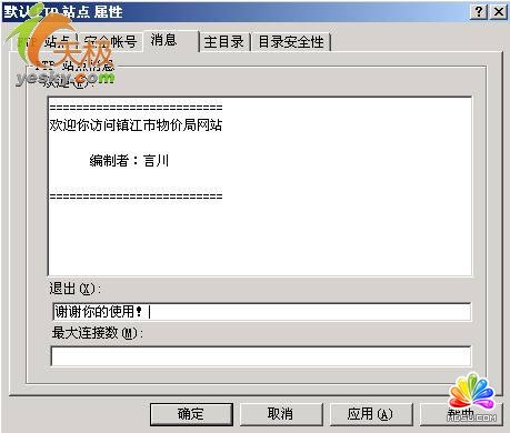 (2)設(shè)置“消息”標(biāo)簽項(xiàng):在“歡迎”框中輸入登錄成功后的歡迎信息,在“退出”框中輸入退出信息(如圖2)。