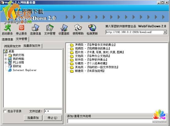 網(wǎng)站生成結(jié)束后,最關(guān)鍵的問(wèn)題是把你FTP網(wǎng)站的地址告訴局域網(wǎng)中的其它用戶(hù)。把地址告訴用戶(hù)的工作很簡(jiǎn)單,關(guān)鍵是你講了許多,根本沒(méi)提到網(wǎng)站地址。呵呵,其實(shí)網(wǎng)站地址已出現(xiàn)在圖1右上角的下拉框中,本文的FTP網(wǎng)站地址是“192.168.0.2:2928/download”。