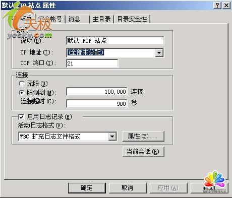 (1)設(shè)置“FTP站點(diǎn)”標(biāo)簽項(xiàng):在“控制面板→管理工具→Internet服務(wù)管理器” 窗口中,選中“默認(rèn)FTP站點(diǎn)→右鍵→屬性”,在圖1的“默認(rèn)FTP站點(diǎn)屬性”框中,“IP地址”可以使用默認(rèn),端口號(hào)保持“21”不變。注意:由于共用同一個(gè)IP地址,因此Web的默認(rèn)端口號(hào)是80,F(xiàn)TP的默認(rèn)端口號(hào)為21。