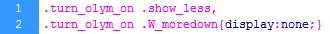 這樣,就只需要js在點(diǎn)擊收起的時(shí)候把turn_olym_on換成turn_olym_off,而點(diǎn)擊展開(kāi)的時(shí)候把turn_olym_off換成turn_olym_on就可以了,其余的隱藏展示全部有css來(lái)搞定。