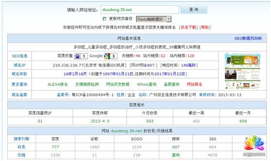 這個數(shù)據(jù)是相對差的,但潛力巨大,因為這個域名是過年前上線的,這么短的時間就有這樣的數(shù)據(jù)是相當不錯的,這也得益于它依靠www.39.net這個平臺,首頁有它的鏈接,對這個專題頁的帶動是很大的,再加上我們seo團隊對它的傾力付出才在最短的時間得到這樣的數(shù)據(jù)。
