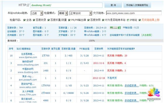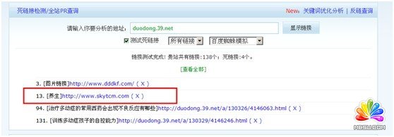 如果一個網(wǎng)站的死鏈接太多,就會影響蜘蛛在網(wǎng)站的爬行,不利于網(wǎng)站整體的收錄和排名,所以要注意死鏈接的查詢。從duodong.39.net這個域名的死鏈接來看,它的死鏈接不是很多,而我圖片中標明的鏈接并不是死鏈接,需要我們對查詢工具抱有一定的懷疑態(tài)度。同時將死鏈接提交給相關(guān)負責人,根據(jù)網(wǎng)站需求進行處理。