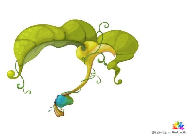 三植物:植物的填充色和小龍基本一致,只是注意光源要和龍保持一個方向。由于小龍也是綠色的,所以在處理植物的時候有意識的去別一下,比如偏黃一點,或者橄欖綠。