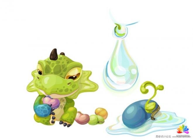 五 花紋和豆子:小龍的花紋是單獨的一層,這樣做便于修改。豆子的形態可以有不同變化,但是上色方式和光源要保持統一。