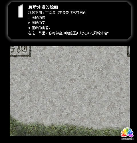在這一節里,你將學會如何繪畫如此仿真的廁所外墻!