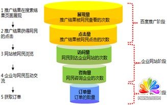 對于企業搜索營銷的推廣過程,將搜索營銷效果轉化漏斗不得不說是一個直觀、有效的方法,如上圖,我們可以很好的從營銷過程中發現推廣的問題,對癥下藥。