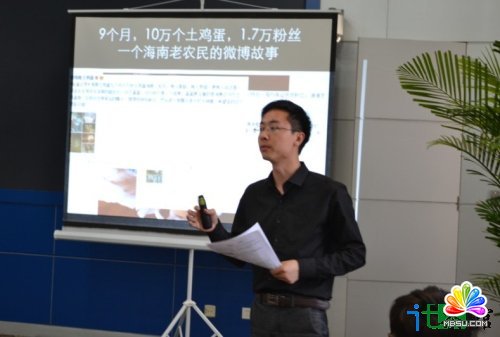 在演講過程中,晏濤表示企業開通了微博卻無法擁有用戶(粉絲),最大的原因則在于企業缺少四樣東西:人、錢、方法、意識!針對這些,他給參會者演示了一些企業官微在微博上做的營銷活動。其中包括一個海南老農民在微博上9個月積累1.7萬粉絲賣掉10萬個土雞蛋的營銷案例;加多寶的“對不起營銷”超過17萬次轉發,覆蓋大概3億用戶。