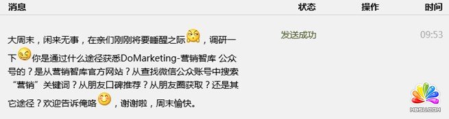 于是筆者有意識的向已經訂閱了“DoMarketing-營銷智庫”賬號的受眾推送了如下一條調研信息: