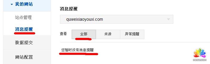因為我也安裝了百度統計,由于查看 網站流量統計的因素,我每天都要順便的到自己的百度站長工具平臺看看相應的工具以及相應的一些數據,今天都已經11日了,貌似我的消息提醒還是空白