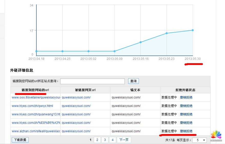 2、不知道哪兒來的垃圾外鏈,特別多,已經被我拒絕了,百度也沒有實時更新。