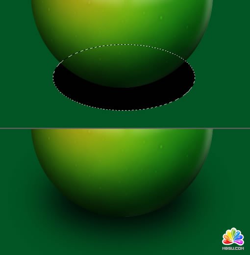 在蘋果組下面建立新層命名為”陰影“。 選擇橢圓選區工具建立選區,填充黑色。取消選區,執行濾鏡》模糊》高斯模糊,應用40像素模糊。( v- S1 W/ ~. f/ w9 c0 X