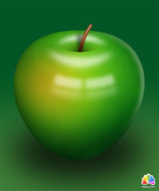最后,我對”斑點“層應用了外發光樣式,設置為:正片疊底,不透明度60%,顏色#2b2b2b,大小8像素。現在選擇除了”背景“層的所有層,執行層》新建》從圖層建立組。命名為”蘋果“。: X2 q. H5 x5 w2 D; c: ]