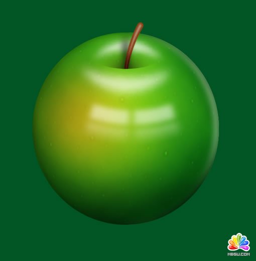 在最上面建立新層,命名為“斑點”。使用畫筆工具,前景色設置為#ccdd99。另外,主直徑設置為5,硬度為100,在蘋果周圍單擊以放置一些斑點。