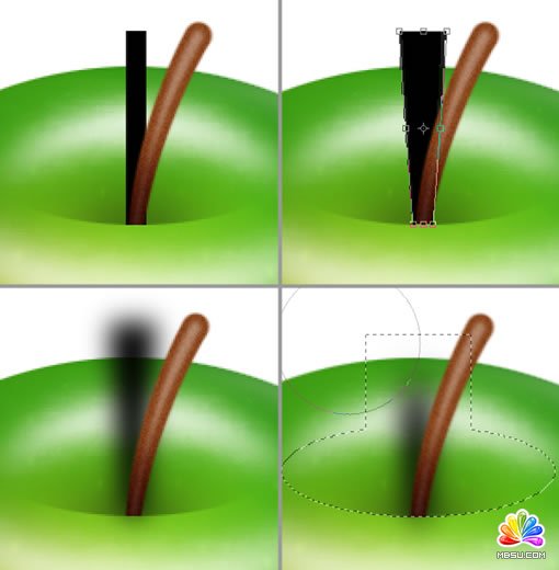 選擇矩形選區工具,按下SHIFT鍵,建立選區蓋住柄的上部。執行選擇》反選,然后刪除多出的部分。取消選區。