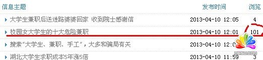 我在想大學生外兼職最擔心的問題是什么,我的網站在初期如何展開推廣這類的話題,大學生在外兼職最擔心的無非是安全性及酬勞是否平等或者能否及時結算薪資,所以我武漢大學生兼職網的定位是幫助學生成長,互幫互助的原則,指導學生在外兼職如何避免突發事件的發生及后續處理,站在大學生兼職的群體里面去思考問題,我想效果一定或很明顯的,昨日我找了一篇關于大學生在外兼職的兩篇文章,一篇是《釣魚網站出“新招” 假冒兼職網瞄準大學生》,一篇是《校園女大學生的十大危險兼職》,這兩個話題都是與大學生在外兼職息息相關的,所以在做QQ群營銷的同時,點擊率是很高的