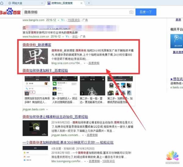 就比如:你現在打開百度搜索“微商快粉”然后看到新浪博客就是我的!這樣的效果就可以了,當然了點擊之后就會看到更多!