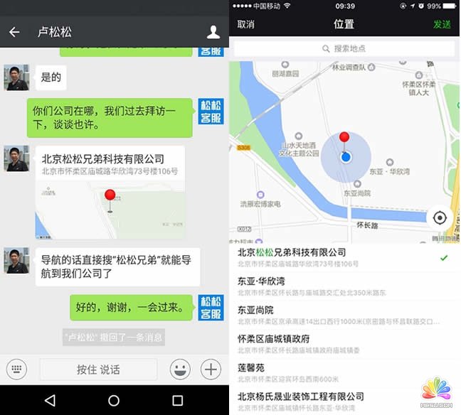 地址增加好之后,過一天,就能在騰訊地圖里搜到公司信息了。只要被騰訊地圖收錄,在微信里、QQ里都能方便的把位置信息發給客戶。