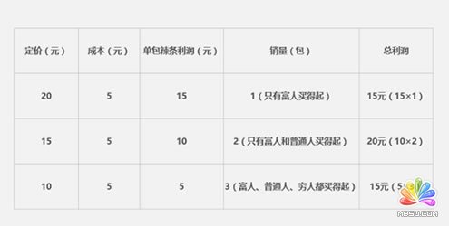 定價 15 元:只有富人和普通人買得起,天貓能各賺他倆 10 元,總利潤 20 元。